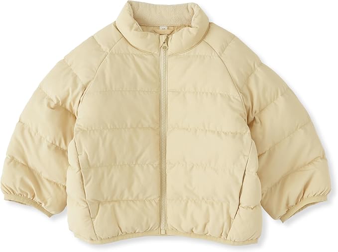 無印良品のベビージャケットです。洗濯機で洗えるため、お手入れが簡単。シンプルなデザインで、ユニセックスで着られます。寒い地域はもちろん、冬の時期の外出時には中わたジャケットを重宝します。